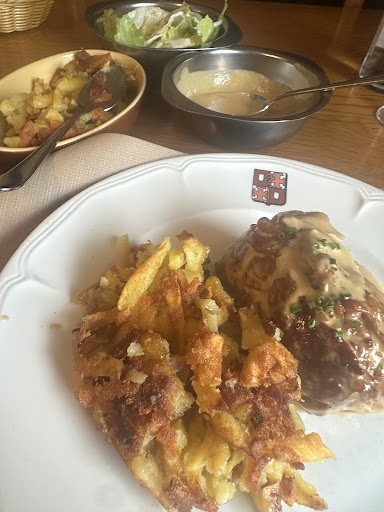 Accueil nul, pourtant nous avions réservé, table de 4 avec 1 enfant de 3 ans et une dame de 85 ans nous avons attendu 50 minutes avant que l’on vienne prendre commande des boissons, il faisait très chaud et lorsque je suis allée demander s’il ne nous avait pas oublié lorsque nous avons vu que d’autres tables venues après nous étaient servies bien avant nous.. La dame cheveux court noir genre 45/50 ans très mal aimable m’a répondu sèchement qu’ on allait venir.. Nos repas sont servis plus d’1h30 après notre arrivée.. Nous n’avons pas pris de desserts ni café, mon petit fils avait besoin de faire une sieste et l’attente du repas s’est vraiment éternisée avec en plus une commande non conforme à ce que nous voulions mais pour ne pas attendre encore nous n’avons rien dit.. Arrivées à 12h15 et sorties à 15h10..!!! 3h pour des patates alors que nous avions réservé..!! Et de plus un personnel odieux PLUS JAMAIS et je ne recommanderai jamais à mes amis et connaissances..!! Repas du...