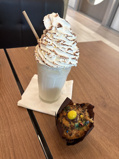 Read moreNul! C'est écris Coffee Break, mais deja après avoir attendu 10min derriere 4 personnes pour 4 expresso, je prend un Moka et un Cappuccino, je vous laisse vous faire votre avis sur la photo prise de suite après avoir été servi. A quoi ça sert d'avoir une machine à café Nespresso pour sortir un pauvre café bas de gamme de station service? Mais en plus la personne ose me dire que c'est la machine, c'est comme ça ! Aucune réaction! ce permets aussi de me donner la recette d'un Cappuccino telle un Barista renommé! Lol! Sans parler que lorsque je suis arrivé, une fille employé (?) assis sur une table du café, fait sans cesse des a/r en parlant à l'employé grand à lunette tout mou, derrière la caisse en se tripotant les cheveux non-stop au dessus des tartes...de toute façon vu la vitrine très moche (17h) tartes cassés dans tous les sens, cookies éparpillés, ça donnais pas du tout envie, et j'en passe...des amateurs, et encore ! Très loin de...