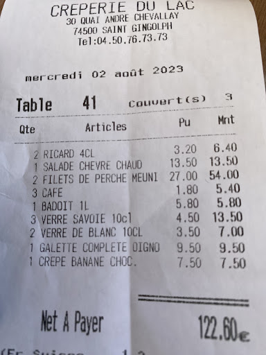 A small clean restaurant that is worth to try. I went to eat to this place while visiting siblings in Saint-Guingolph, France. It is a charming little spot with classy style. In summer time, when weather allows it, the view to Lake Geneva is astonishing. In terms of service, since I believe is run by a family, it is friendly and attentive. The special of the place is both salty a sweet crêpes, which are yummy! They also sell decent variety of ice creams and wines. A nice spot to discover for €€ small and...