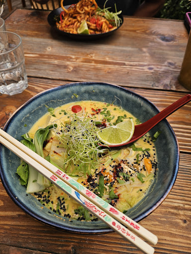 The food is absolutely outstanding. We couldn’t decide so ended up with trying a lot of the starters/sides - we got the broccoli, chicken satay, veg gyoza and a bang bang type cauliflower. Then for Mains we had tofu pad see ew (specials menu) and the chicken teriyaki bowl. Food comes out as and when which we didn’t mind as we were sharing a lot of it. All the portions were generous and quality and flavours of the food were incredible.
