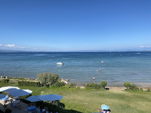 Read moreThe service was exceptionally good: friendly, understanding (my wife is allergic to celery and they provided a list where all the dishes are cross referenced to the menu with numbers showing what might be allergenic) and relaxed, especially when we asked if we could change the proposed fix menus, and add something like a salad. This, of course, was not only accepted but duly adjusted when the bill came, and we ended up paying less for a service à la carte. The food was very good (filets de perche and féra), side dishes delicious, wine perfect at a more than decent price, shared crême brulée a perfect dessert and coffee almost as good as in Italy. The scenery in itself is worth the visit, and the quiet in the evening a plus, even if the place was full. The prices were below what we expected, as mentioned above. Perfect seems a nice word to describe...