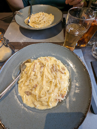 The pizza’s we ordered were quite tasty, but the pasta was really bad. The ingredients in the pasta did not match the menu, so we asked the staff if we got the correct order. For example, there was no truffle to be found in the pasta, which was stated on the menu. We also told them that the taste was very bland and the pasta was way to heavy. They made the sauce with lots of cornflower and milk, but the moment it cooled down the whole dish became a solid mass that was impossible to digest. We send two of our dishes back because we could not eat it and we mentioned is was not a problem, but we suggested that they change the recipe for future customers, because you cannot serve a pasta like this. Later, the manager replied that she didn’t care we did not like it. She literally (and arrogantly) said; “it’s our job to cook it, it’s your job to like it.”
