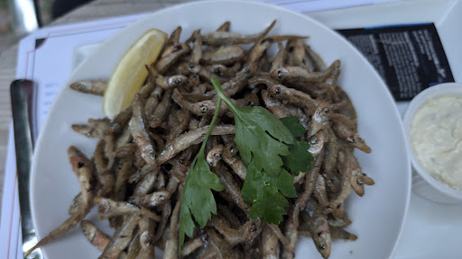 La friture d’éperlans en entrée était mal cuite, molle, pas du tout croustillante, et beaucoup trop salée. Mon plat principal, un filet d’omble chevalier, était correct sans plus, mais la sauce “guinguette” n’apportait rien, et les frites semblaient être des surgelées.