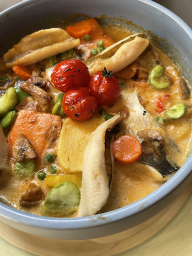 We enjoyed a delicious lunch at Le Bateau Ivre in early August, 2023. Dishes included the Salade Folle (with excellent home-made foie gras), the Carpaccio de Boeuf ( thinly sliced, high quality beef, sparingly seasoned as it should be and served with delicious non-greasy homemade fries), and a daily special which was a nicely done grilled seabass. Desserts included a crème brulée with a subtle zest of Kombaya citrus. Everything was interesting in a good way: thoughtful, creative, but in a way that is simple and that works. The atmosphere was convivial...