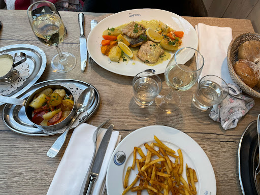 The perches a la creme were good, but the sauce was very liquid. The perches a l'ail were in a few spoons of water. Very tasty, but that was rather soup than sauce. Also the latter were quite dry, almost crunchy. And the fries were also way too dry. The salad was the usual crunchy and very fresh.