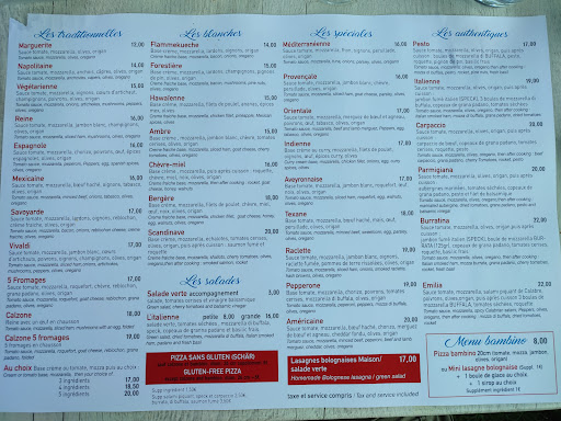 Dans l'ensemble Repas: revoir garniture des pizzas pour qu'elles soient plus en accord avec le prix, certains pizzas à plus de 24€ et celles de bases à 16€ Lasagne maison!, c'est évident qu'elle ne le sont pas car produit arrivé froid en assiette et pateux en bouche, produit décongélé!