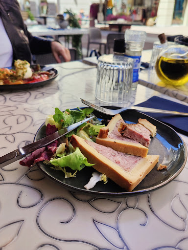 Toujours en ballade dans Evian, à nouveau sur SA rue piétonne en soirée, autour de 22h, pas gagné pour manger un en-cas ou un petit plat maison "non, on ne sert plus"... Ah bon, alors au revoir ! Les villes touristique sont bien étranges ou alors c'est specifique à Evian et Thonon ? Les commerçants et restaurateurs en ont peut-être marre, justement, des flots de touristes et surtout de leurs exigences ! Ça peut se comprendre mais bon... seul, je ne demande pas la lune, juste un sourire 🙂 Alors je poursuis ma route et arrive chez Monsieur Maurice et bing, "Oui, on sert encore les planches" ! Allez hop, 1 p'tit apéro anisé comme j'aime bien, charcuterie locale et chorizo, un rouleau de beurre, cornichons, tomates, pain à volonté, NICKEL ! MERCI MR MAURICE pour votre accueil, vos sourires et nos échanges sur Évian et sa région où finalement, j'apprécierai de me poser quelques temps si je trouve un taf adapté (la vie est chère, les locs aussi, la Suisse est proche, juste en face et en frontière avec Saint Gingolph à 15 km, Genève à 48 km et Lausanne à 60 km~10 km en bateau, c'est juste en face d'Évian)... Bon vous aurez eu droit à mes tartines de vie perso et pour ma part à des tartines de beurre avec de la bonne charcuterie. Je stoppe là, merci de m'avoir lu jusqu'au bout de cette nuit...