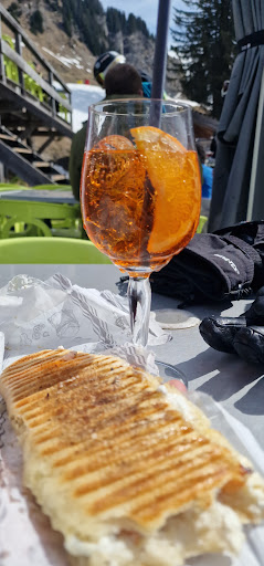 This is a regular lunchtime spot for us. The location is perfect for our group of mixed ability skiers. The speed of service (or self service) is exactly right for a lunchtime pitstop. The food inside the cafeteria is good and warming on a colder day. The outside hot dog and burger bar hits the spot on a sunny day. The bar is always good regardless of...