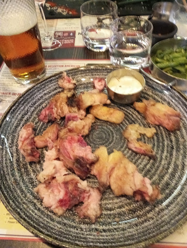 Read moreOriginalement parti pour laisser un très bon avis suite a un précédent passage il y a un an, nous sommes revenus récemment et avons été très déçus. J'ai commandé une côte de black pearl bleue, suite a quoi la serveuse m'a gracieusement conseillé de la prendre saignante du fait du persillade de celle-ci. Connaissant les viandes très persillées/grasses des US, j'ai pour habitude de prendre la viande saignante dans ce cas, j'ai donc décidé de lui faire confiance. Une autre serveuse est venue me présenter la côte, je n'ai pas franchement vu de persillage mais ai décidé de m'en remettre à la réputation de cette race et ma satisfaction lors de ma précédente venue. La côte est finalement arrivée bien trop cuite (au mieux rosée, au pire à point en plus de quoi le tant attendu persillage semblait finalement bien absent. La serveuse a bien remonté l'information en cuisine où il semblerait que le cuisinier ait eu du mal à reconnaître une cuisson saignante. Je n'ai pas voulu batailler plus que ça mais le résultat est là... Un morceau de viande sans aucune jutosité ni tendreté payé quasiment 80€ que j'ai tout de même mangé pour me rassurer psychologiquement de ne pas mettre d'argent à la poubelle. Aucun geste in fine, nous sommes venus une seconde fois avec un très bon a priori mais je pense que c'était...