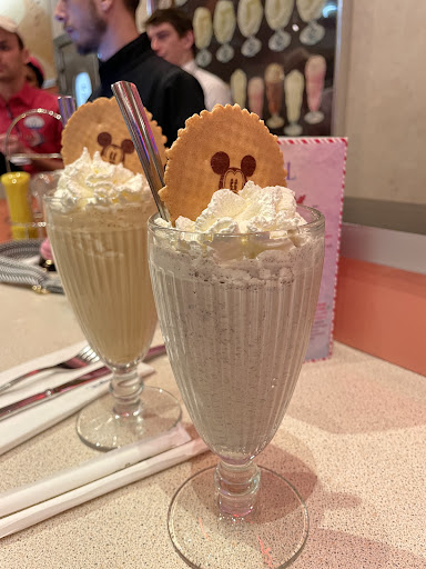 Read moreTo start with the positives, the milkshakes were delicious and obviously the interior is really cool, as are the waiters on roller skates (not to nitpick because I know finding waiters who can roller skate seems a very niche employment criteria, but it feels a bit random that only a few of them do whilst everyone else goes around like normal. Would maybe prefer if all staff can’t then nobody does?). But aside from that, can’t say I’d revisit this place, especially as I heard the queues can get really long and I don’t think our experience would make a huge wait worthwhile. Thankfully we went off-season, and a couple of hours before the parks closed to avoid the queues I’ve heard about.