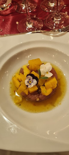 Beef-Club Waouh quelle expĂ©rience ! D'abord l'Ă©tablissement : nous sommes arrivĂ©s par le parking de l'hĂŽtel 4* Dali de Chanteloup qui amĂšne Ă la piscine avec une ambiance musicale discrĂšte, Ă la terrasse du restaurant puis aux salles du restaurant et si l'aventure vous tente, au club en sous sol le Gatsby (salle magnifique). Nous sommes reçus par le Chef exĂ©cutif Philippe Geneletti, veste noire, fiĂšre allure accompagnĂ© de ses collaborateurs, tous armĂ©s d'un sourire particuliĂšrement chaleureux. ImmĂ©diatement on sent que l'on va ĂȘtre cĂąlinĂ© par l'Ă©quipe constituĂ©e ce soir lĂ de : MĂ©ghan l'hĂŽtesse d'accueil. MaĂ«va la manager. Marion la chef de rang AmĂ©lie la sommeliĂšre et Le chef Thierry mercier qui officie en cuisine. Le Beef-Club est un restaurant de viandes exceptionnelles qui propose un menu gastronomique ainsi qu'un service particuliĂšrement attentionnĂ©, au sein d'un hĂŽtel 4* fraĂźchement ouvert. Nous sommes installĂ©s sur une table de quatre couverts dans un angle. L'ambiance est agrĂ©able, calme et chaleureux. Le dĂ©cor, tout neuf, est vraiment soignĂ© dans les tons de dorĂ©, rouge et noir principalement. L'ensemble est smart, classieux. La carte comporte diffĂ©rents menus pour le midi et la semaine et "Ă la carte". Le menu dĂ©gustation Ă 120âŹ/personne est incroyablement complet. Nous avons prĂ©fĂ©rĂ© "Ă la carte" et pourtant le repas sera particuliĂšrement copieux. Nous avons choisis des apĂ©ritifs, un plat et un dessert. Se rajoute, la mise en bouche, le vin et les mignardises ainsi qu'une coupe de champagne. Les apĂ©ritifs Ă©taient excellents ! Merci au barman et Ă ses alcools de qualitĂ© (Gin & tonic incroyable). Arrivent les plats, 2 viandes (ChĂąteaubriand de boeuf Rossini et un shashi beef), un poisson et un terre-mer (homard+viande). Les viandes sont divines, la cuisson terminĂ©e Ă la flamme Ă table est ultra prĂ©cise et les sauces particuliĂšrement goĂ»teuses. A titre personnel j'ai trouvĂ© le travail du maĂźtre saucier particuliĂšrement abouti. Ajoutez la poĂȘlĂ©e de Champignons par exemple ou le crĂ©meux de pommes de terre Ă la trufatta et l'ensemble est parfait. Concernant les vins, la sommeliĂšre saura vous conseiller vers de grands classiques ou quelques surprises gustatives. C'est le choix que nous avons fait et sommes partis dans la vallĂ©e du RhĂŽne (de mĂ©moire) avec un vin blanc adaptĂ© aux viandes rouges commandĂ©es. Surprenant... Le poisson un black cod cuisinĂ© au whisky et miso (qui donne la couleur et le fumĂ©) Ă©tait vraiment excellent. Les desserts : comme un snickers, nuage de lait et sa rhubarbe, tartelette Ă la fraise et un cheesecake au cassis.... Les quatre Ă©taient trĂšs bons, mais moins transcendants. Peut-ĂȘtre aussi parce que le visuel Ă©tait tellement incroyable que nous nous attendions Ă encore plus... C'est un dĂ©tail devant la qualitĂ© de tout le repas et la perfection du service. Je vous recommande chaudement d'essayer cette table. D'oublier tout ce long rĂ©cit pour vous faire votre propre point de vue. Restaurant pour les adorateurs de viandes rouge mais aussi pour tous les autres. J'espĂšre que vous partagerez mon engouement. Bonne...