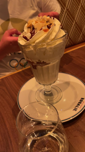 For dessert, I indulged in a crème brûlée that was divine—easily one of the best I've had. My fiancé's sundae was enjoyable, though it didn't quite match the high bar set by the rest of the meal. To top off the evening, I had a glass of Riesling wine, which was the perfect complement to the meal.