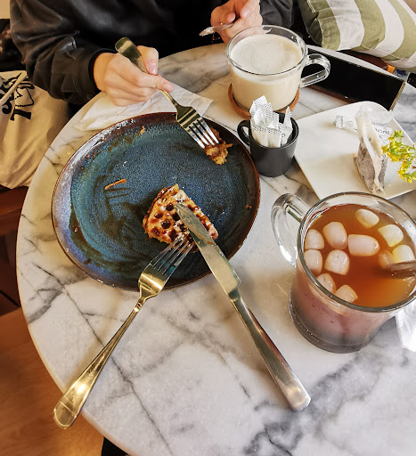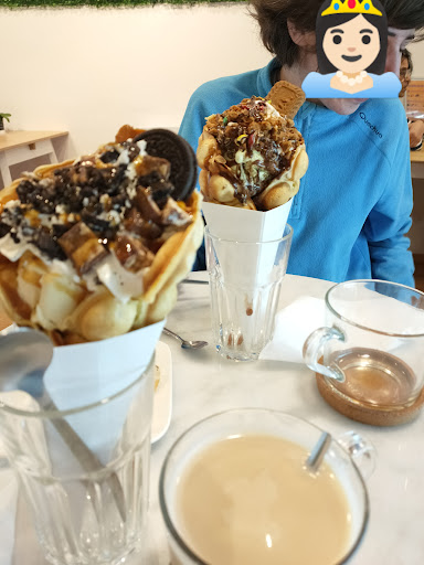 Read moreSuper découverte! Parfait pour retrouver une amie de longue date. On a goûté deux thés et deux Bubble waffles (mes nouvelles gaufres préférées) et c'était au top! J'ai trouvé qu'il y avait trop de lait dans mon chai latte, parce que je le préfère avec un nuage de lait. Mais c'est sûrement une question de goût donc je n'en tiens pas rigueur, j'en demanderai moins la prochaine fois! Dommages qu'il y ait eu pénurie de fruits de saison, mais pareil, les fruits poussent théoriquement pas toute l'année donc ça ne me dérange pas, je préviens juste qu'il est possible qu'il vous soit impossible d'avoir des fruits dans votre Bubble waffle 😊 Si je mets pas 5* c'est parce que je n'ai pas testé assez et que je réserve la 5eme aux enseignes coup de cœur que j'ai dévalisées. Pour le moment c'est un coup de cœur, je repasserai par là en revenant dans la région...