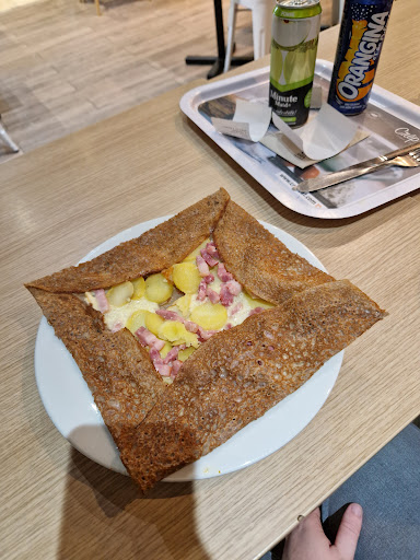 Read moreTotalement déçue de cette visite à Crêp'eat. Lors de la prise de commande, le monsieur nous annonce qu'il ne sera pas possible de manger à l'intérieur car il n'y a plus de place et qu'ils ne font plus que du "à emporter". Je remarque des places, le lui fait remarquer et sa collègue intervient en me disant qu'ils n'ont plus de vaisselle (curieux pour un restaurant). Devinez ce qu'il y avait sur le comptoir ? Des assiettes (avec plein de poussière dessus mais de la vaisselle...). Lorsque vous passez commande, vous n'avez pas de ticket et ne pouvez donc pas justifier de votre achat à la préparatrice de crêpe. De fait, j'ai attendu 15 min une gauffre et une crêpe car la préparatrice ne recevait pas les tickets de préparation dans l'ordre. Complètement perdue elle donnait les crêpes aux mauvaises personnes et s'en rendant compte, les reprenait et les redonnait aux bons clients. Niveau hygiène on repassera. D'ailleurs, il serait bon de couvrir les aliments salés (jambon etc) pour éviter qu'ils prennent la poussière ou simplement qu'ils ne sèchent pas. Quant à l'arrière, c'est en bazar total. Tellement qu'ils ne savaient plus où poser les crêpes et gauffres. Quand enfin elle a vu que j'attendais ma commande, elle m'a demandé ce que j'avais commandé... Finalement, elle dit à sa collègue à voix haute: "je lui prépare sa gauffre à elle". "Je prépare la gauffre de la cliente" aurait certainement été plus approprié. Pour terminer, si les crêpes sont préparées sur place, les gauffres sont industrielles et juste chauffées. Quelle déception ! Pas sûre de revenir un jour chez Crêp'eat et pourtant c'est moi qui avait vanté les crêpes de cette enseigne à une amie. Je ne...