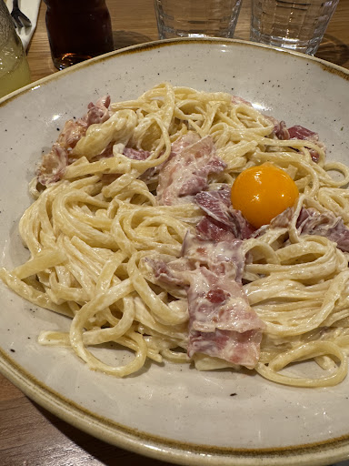 on nous sert alors notre apéritifs : des verres rempli de glaçons avalé en deux gorgé extrêmement sucré... Pour picoré ont nous sert une assiette sans présentation avec des tomates cerises coupé en deux et une burrata au milieu ( aucun condiments, sel,poivre ou autre,) ainsi que 3 morceaux de pains ridicule. Ont commande nos plat et ont demande une carafe d'eau, de l'eau pétillante et du vin en plus, ainsi que les condiments. Ont nous apportera nos plats froids pour moi, tièdes pour ma femme. Les quantite sont ridicule, 7 raviolis dans le plat le plus chere de la carte des pasta ! je n'aurai jamais mon eau pétillante, quand au verre de vin il me sera amené a la fin de mon dessert ! Bien que demander 3 fois. Sans me demander si je le ceux toujours, d'ailleurs jamais ont nous demandera jusqu'à notre depart si ca a été etc...