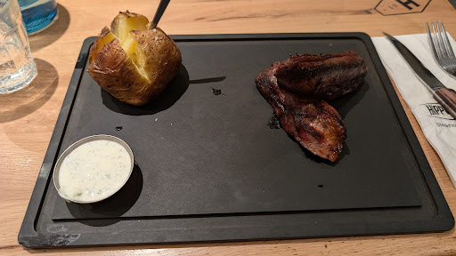 Oh quelle déception! Et pourtant ça commençait bien, le restaurant est neuf et très joliment décoré, un très bel écrin. La carte donne aussi envie, c'est du bistro et c'est ce que j'aime. Mais ça a très mal commencé. J'ai commencé avec un cocktail "soft", ah oui très soft, 70% de glace pilée, 20% de feuilles de menthe et de citron et 10% de liquide, en plus ça n'avait aucun goût, une arnaque! Enfin une arnaque à près de 8€, ça pique un peu. Un bon conseil, optez pour un coca, au moins vous ne serez pas déçu. Enfin pour 3 cocktails servis, un mini cornet de chips, c'est vraiment peu, fallait les compter! Vient le plat, une andouillette. Là, rien à dire sur le goût, elle était vraiment très bonne. En revanche une autre déception quand on vous la sert, elle arrive "nue" sur une ardoise avec un petit cornet de frite avec, que ça fait radin comme présentation, même pas une mini déco avec coleslaw où un peu de salade, un repas, c'est aussi avec les yeux qu'on le mange. Quand aux frites, elles étaient bonnes mais on les liquide vite, et pourtant je suis un petit mangeur. Mon épouse prendra un gigot qui semblait plus généreux...sauf que l'os était presque plus gros que la viande autour. Mon amie prendra les trois mini burgers...oui, ils sont bien mini, à peine plus gros que les mises en bouche de chez Picard. Un autre mauvais choix, oubliez ce gadget, prenez un vrai burger à la carte, vous serez moins déçu. Le plat avalé rapidement (avec les petites quantités servies, on ne traine pas à table), je prends un dessert. Là encore la carte donne l'eau à la bouche. Pour moi, un caramel liégois. Bon, un autre échec, une coupe pas énorme avec beaucoup de crème pour cacher le peu de glace, c'est avalé en quelques secondes, vu, le prix, c'est une honte. Ma on amie elle prendra l'ananas rôti...oh la vache, c'était minable, ça n'aurait pas contenté un enfant de 4 ans. Un mot sur le service, correct, moyen, sans plus. Bilan, c'est presque un zéro sur toute la ligne. Le conçurent Buffalo n'a pas de soucis à se faire, le sheriff est beaucoup plus généreux en tout et se paye le luxe d'être moins cher! D'autres chaines sont largement au dessus, il n'y a pas photo. Là, plus jamais je ne reviens dans cette chaîne, on s'est v clairement fichu de moi, j'ai rarement vu un restaurant...