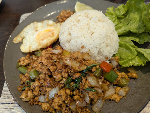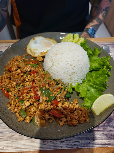 Loved our lunch stop here. Our family shared a few authentic Thai dishes which were all fresh and delicious. Our kids 7 and 9 opted for the chicken rice and chicken noodles from the children's menu. They also enjoyed sampling our beef samosas and chunky prawn spring rolls, recommend both for their crispy pastry and tasty fillings. The tender beef loc lac with red rice and a fried egg was excellent. Thai basil chicken was very flavoursome too. Smoothies and bubble teas in a choice of flavour combinations available. Wonderful...