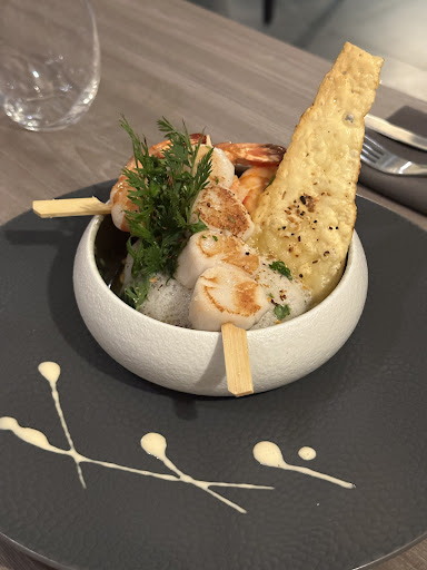 J'écris rarement ce type de commentaire mais je veux prévenir : beaucoup beaucoup BEAUCOUP trop cher pour ce que c'est! Ni la quantité servie, ni la qualité des plats (bien que bonne!) ne peuvent justifier les tarifs pratiqués. Mon plat (noix de st jacques risotto et gambas) faisait la taille d'une entrée, le dessert (fondant et glace pistache) était bon mais basique et n'avait rien qui pouvait justifier le prix, les cocktails sont exhorbitants pour de petits verres. Les tarifs sont élevés: 30€ entrée plat ou plat dessert OU 38€ entrée plat dessert, sans boisson. Nous avions été prévenus. Les commentaires en ligne le mentionnent déjà à plusieurs reprises. Mais mes amis et moi avons voulu tester par nous-même, et malheureusement c'est la même conclusion: les plats sont bons, mais le rapport qualité/prix n'y est pas du tout, et ce malgré la qualité du cadre très chouette et le service agréable. J'encourage vraiment l'équipe du restaurant à prendre en compte les commentaires clients déjà laissés en ce sens! Et à continuer à livrer leur excellent service à table, mais surtout à revoir leurs tarifs (ou à réhausser encore la qualité pour les justifier? augmenter la quantité servie?). Ce resto a du potentiel, nous avons passé une bonne soirée et sommes contents de nous être fait notre propre idée... mais si c'était à refaire j'aurais insisté pour qu'on aille ailleurs.