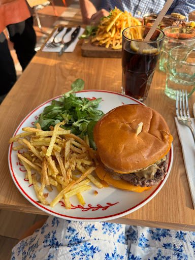 Read moreNous sommes venus pour 21h vendredi soir. il s'agissait de ma première visite après en avoir entendu que du bien. Nous avons été très bien accueilli dans un cadre vraiment très beau, qui donne envie d'y passer quelques soirée en été et essayer la terrasse. un petit peu d'attente car beaucoup de monde, et on remarque qu'il y a des jeunes serveurs dans la salle qui sont surement en train de débuter. j'ai choisi le "CRUDO DE SAUMON" et son crumble d'olive qui me donnait vraiment envie. je n'ai pas fais attention a l'accompagnement en choisissant je n'ai regardé que le poisson. et mon conjoint a choisi le "BURGER DOUBLE". quelle ne fut pas ma surprise de voir un assiette de frite (délicieuses les frites) accompagner un Gravlax (saumon cru épai, genre sashimi) très huileux, et .. sans Crumble aux olives.... avec 2 feuilles de mâches. dommage je n'ai pas fait de photo. Mais quel dommage !! les frites et le saumon cru ?? non... ca ne va pas ensemble ! et vraiment trop gras ce plat entre la friture et l'huile sur le saumon... bref tant pis la prochaine fois je prendrais de la viande. Parce que je peux vous assurer que le Burger énorme de Monsieur était délicieux ! j'ai goutté le steak, avec une cuisson parfaite, et il était vraiment très très bon !! Monsieur reput, moi envi de terminer sur une note agréable, je choisis un Colonel. Le service, effectué par une petite jeune en formation, elle m'apporte un colonel : 2 boules de citron.... sans vodka... sans fioriture, juste une coupe avec 2 boules. C'est triste pour 8€... je préviens le serveur qui par avec ma coupe, et reviens avec plein de vodka. c'était bon.. mais visuellement pas terrible... Allez c'est pas grave, je n'en tiens pas rigueur, ca arrive les premières fois loupées, mais mon conjoint, est dejà venu 3fois, et jamais décu. Enzo, a été charmant, il a comprit quand j'ai évoqué gentiment ma petite déception, il nous a fait un gentil geste commercial, ce qui fait qu'on repart avec le sourire et l'envie de revenir. Alors Merci Enzo et...