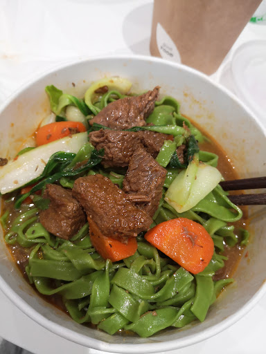 Une belle suprise, j'ai testĂ© le ragoĂ»t au bƓuf, la recette est diffĂ©rente des autres restaurants, mais c'est fait maison, avec des pĂątes fraĂźches et des lĂ©gumes bien frais. J'ai demandĂ© des pĂątes de riz Ă  la place des nouilles jaune aux oeufs et j'ai eu des pĂątes fraiches vertes Ă  la place. 😍 Une Ă©toile en moins, car le bƓuf manquait vraiment de tendresse, c'est un peu dommage!!! Effectivement, le plat est assez Ă©picĂ©, personnellement cela me convient, mais ça sera peut ĂȘtre trop salĂ© pour certains. Je testerai les autres plats la prochaine fois. J'ai utilisĂ© le service de livraison restobussy, et j'en suis ravie.