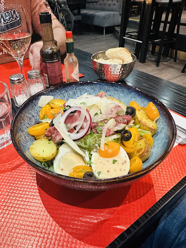 En ce qui concerne la cuisine, elle était tout simplement délicieuse. Pour ma part, j’ai choisi la salade du Sud-Ouest, et je dois dire que j’ai retrouvé tout le Sud-Ouest dans mon assiette, moi qui viens de cette belle région. C’était copieux, parfaitement dosé et bien assaisonné. Les gésiers étaient cuits à la perfection, le fromage avait un goût savoureux, et la salade était d’une fraîcheur irréprochable. La personne qui m’accompagnait a opté pour un tartare de bœuf, qu’il a demandé à ce qu’on lui prépare, et il a tout simplement adoré.