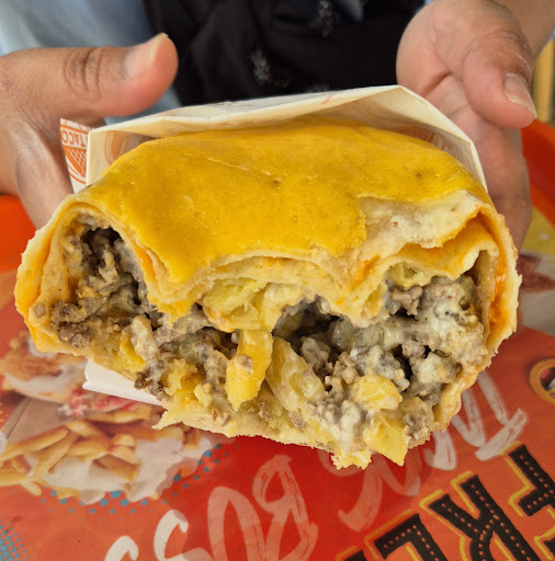 Dès la première bouchée, j’ai compris que quelque chose n’allait pas. La viande était à peine cuite, voire carrément crue par endroits, ce qui est inadmissible pour un établissement de restauration. Les frites dans le sandwich ? Tout simplement pas cuites, donnant une texture désagréable et un goût fade. La sauce fromagère, censée apporter du crémeux et de la gourmandise, était froide à l’intérieur du tacos, rendant l’ensemble encore plus écœurant.