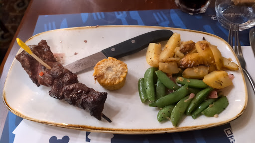 We ordered food and drinks when we were eventually served as we had PLENTY of time to look at the menu. Only after being seated for 25 minutes was I made aware that the steakhouse was out of actual steak... The waitress suggested steak skewer, although I would have preferred to get a real steak somewhere else we were starving. The drinks, 2 soft drinks, took a further 7 minutes.