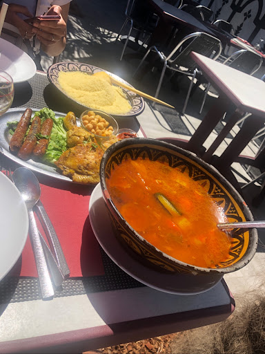 Read moreTrès mauvais aceuil (il était 21h), nous avons eu que la moitié des entrés et pas de chance avec un cheveux. La tajine au 7 légumes était très fade et la moitié était des légumes congelé et l'agneau n'était pas vraiment bon, parlons du couscous très bonne semoule mais les légumes ont été cuit à l'eau et rajouter au bouillon encore une fois très fade. Nous avons demandé un a prendre les restes (la moitié du repas) pour notre chien et la réponse à été qu'il ne faisait pas ça ici nous avons insisté et il nous on ramené des boites. Le serveur nous a dit qu'il habitait loing et qu'il travaillait le dimanche donc si on pouvait partir ça l'arrangerai alors qu'il y avait encore plusieurs tables.franchement...