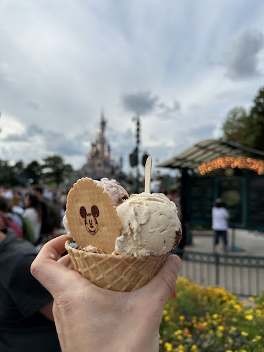 As a frequent Disney park goer I can hands down say I had an unbelievably terrible, almost laughable experience here. Queued for an hour to get ice cream only to find at the top of the queue that the reason the wait was so long was that the six (albeit polite and smiley staff) had absolutely no idea how to run a simple operation. Their obvious incompetence meant that they were repeatedly getting orders wrong (one lady got the wrong ice cream four times and the man serving her didn’t seem to care and in fact got quite snippy with her when she was very reasonably asking for proper scoops of the flavour she ordered with the topping she paid for after waiting an hour in a queue). It was honestly incredible to watch a simple operation fail so badly. As someone who has worked in the service industry I can honestly say that they appeared to lack any training or any management whatsoever. However the ice cream was delicious and beautifully presented, and while the 4€ bottle of water is highway robbery, 3 scoops of ice cream for 5.50€ at Disney is not the worst...