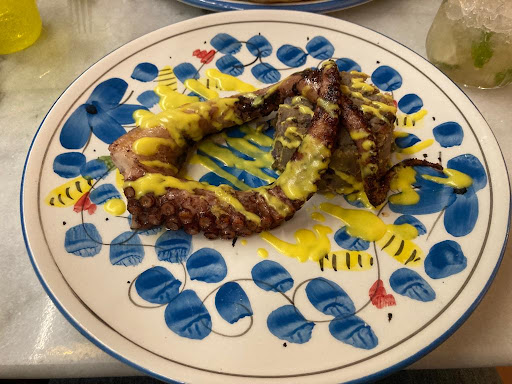 Je suis ancien (récent) restaurateur propriétaire de 2 restaurants et accompagné de mon ami patron d'un restaurant toujours en activité et de mon fils. Première visite avec beaucoup d'enchantement initial qui s'est évoluée vers une très rapide déception. Je m'explique : Le cadre est très sympa malgré la qualité moyenne du matériau et des meubles utilisés, mais ça se comprend et de ce côté c'est plus tôt réussi. Bravo ! Cocktail Caipininha à 8€ ne contient que de la glace pilée (photo disponible), le sucre n'est même pas mélangé. Aucun goût par manque d'alcool. Mon ami ne l'a même pas touché. Le restaurateur soigne sa marge, je comprends bien dans ce contexte difficile du coût des matière premières, mais franchement, il y a des limites. Le plat "Poulpe à la purée violette" est pauvre en quantité de purée servie mais surtout elle est FROIDE (même pas tiède). Constat prouvé et non démenti par la serveuse. J'ai demandé de le réchauffer. Par contre le poule est très bien travaillé, cuit comme il le faut te bien assaisonné. Bravo au Chef sur ce point. La pizza de mon ami était à peine tiède, pourtant la distance séparant le four à notre table était d'une dizaine de mètres... Pas trop de goût, les bordure sont surdimensionnées pour certainement économiser le nappage à l'intérieur de la pizza. Les pâtes Carbonara de mon fils avait un bon goût mais là, le même problème, le soin de la marge commerciale les rend particulièrement ridicules en quantité. Les jeunes serveurs font bien leur travail mais la marge de progression est encore large. Je suis compréhensible car bien placé pour comprendre la problématique de la restauration depuis le COVID. A notre départ, sans aucun "au revoir" ou "merci" (même si c'est commercial) de la part de l'équipe de l'établissement. Nous reviendrons peut être dans quelques mois, pour laisser le rodage se faire, et donnerons notre nouvel avis plus tard. Bon courage au patron te à toute son équipe. J'espère que les critiques et commentaires de vos clients aideront le restaurant à trouver très vite la bonne direction pour assurer un bon équilibre entre la satisfaction de la clientèle, un minimum de bénéfice (c'est le but) et un épanouissement du personnel dans ce contexte très difficile particulièrement pour le...