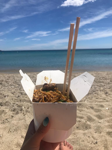 Déception... l'année dernière, nous avions mangé au restaurant et ça s'était très bien passé, on s'était régalé. Cette année, nous avons donc opté pour un repas à emporter en pensant que la qualité serait la même. Loin de là... Les makis étaient OK, même si nous n'avons eu que 1 wasabi et 1 sauce soja salée alors que nous en avions demandé 2. Mais au moment des plats, nous avons été très déçus. Le pad thai n'avait rien d'un pad thai, tout juste des nouilles sautées, très aillées, mais rien des codes habituels de la recette dont j'ai l'habitude. Les légumes aux noix de cajou, eux, flottaient littéralement dans du bouillon, beaucoup trop flotteux, pas gourmand. Bon... je me suis dit "on va finir sur une bonne note, passons au dessert". Que nenni car le dessert a été oublié ! La dernière boîte, que nous imaginions être notre baba au rhum, était... une portion de riz... ça aurait été mieux de savoir qu'elle était là quand on a mangé les légumes à l'eau, ça aurait épongé. Malheureusement nous étions déjà rentrés à notre hôtel et n'allions pas reprendre la route pour récupérer un dessert. Un grand...