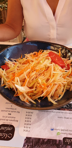 Meine Schwester, mein Freund und Ich wollten dort schön essen gehen. Der Kellner war unfreundlich und unmotiviert, als dass Essen kam fiel der Reis auf meinen Freund. Danach fiel noch ein Reis auf ein Trinkglas das kapput ging und scherben verursachte, ich bin selbst gelernte Gastronomin so servieren ist unverantwortlich. Ich habe sehr viel Verständnis für Leute im Service weil, ich selbst von dort komme aber so was habe ich selbst noch nie erlebt. Als ich in meinem Reis Haare hatte und meine Schwester scherben im Curry gefundene hatte, mussten wir fragen für neues Essen. Daraufhin kam nur neues Tischgedeck (das er mit den finger an der Gabel spitze und Messer spitze berührte und hinlegte) Das alles hat uns den Appetit verdorben, meine Schwester und mein Freund gingen hinein um zu zahlen weil, wir nur noch gehen wollten. Da hat der Chef dir Frechheit gehabt mein Freund zu beschuldigen, dass er den Kellen geschupft hat. Wir können kein perfektes Französisch, aber so frecht zu reagieren und noch zu sagen wir sollten nie wider kommen, weil wir lügen war zuviel. Wir kommen nicht mehr versprochen.