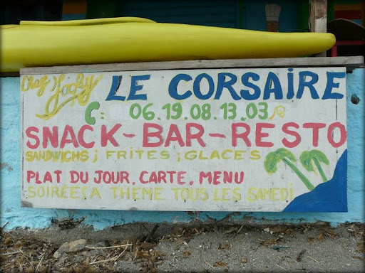 Beautifully situated at a small bay framed by rocks Le Corsaire may be a good place to drink one or two glasses rosé in the sun (which we didn't do). But I discourage you from eating there. 52 ⏠for two persons! This price included 0,5l of red wine (out of not quite clean glasses), a small salad (salad, tomatoes, cheese) and a stale wolffish with only a few wet frites. While we were eating our rip-off the owner and the chef enjoyed a dinner much more opulent and...