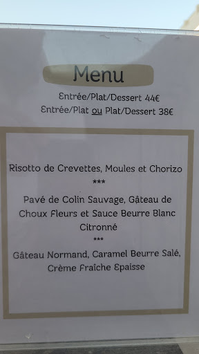 L'accueil était fort sympathique et les 3 serveurs etaient disponible, souriant et à l'écoute. Seul fausse note, le chef qui a commencait à faire le tour en fin de service, nous a vu (3 enfants et moi), mais a préféré s'arrêter directement vers ses clients habituels (un couple), mais surtout n'a même pas daigné répondre au bonsoir que je lui ai adressé en partant. Les prix des plats en séparés sont peut être un peu élevé, mais la qualité et la vue vous le fera oublier. Pour ma part, j'ai pris un menu complet (entrée plat dessert) mais possibilité d’avoir qu'une partie. Une mise en bouche agréable a ete servit (je ne me rappelle plus quoi parce que cela fait quelques jours). Le risotto de crevettes, moules et chorizo, était très bien équilibré en saveurs terre et mer. Le pavé de colin sauvage est cuit comme il fallait avec une peau bien croustillante, le gateau de choux fleurs était fait un peu comme un flan avec de beaux morceau de choux encore légèrement croquant et la sauce beurre blanc citronée était savoureuse et légère, on aurait pu rajouté un tout petit peu plus de citron, le tout était accompagné de quelques radis cuit juste croquant. Le dessert gateau normand était également bon, la seule question serait pourquoi normand et pas quelque chose plus régional ? Le menu enfant (20€), comprend plat, sirop, dessert. Au choix viande haché (qualité bouchère) ou poisson frais tous 2 sont vraiment très bon, avec un petit penchant pour le poisson. Pour le dessert 2 boules de glace... elles auraient mérité un petit accompagnement: déco ou quelque chose. En sommes, vous pouvez aller y manger les...