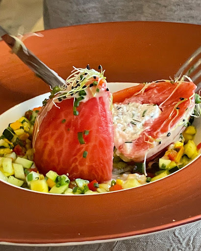 Read moreThe food is delicious. Particularly enjoyed the stuffed tomato and the monk fish/lobster polenta dish. Great melon soup as an „amuse-gueule“. Disappointing was the wait staff who only deign to serve you and the hostess who refused to give us a spot on the terrace even though the table remained empty for the duration of our visit. We would have booked another night here if it hadn’t been for...