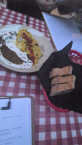 Starter (some type of hummus and another spread) with bread was ABSOLUTELY AMAZING, and all the other plats got progressively worse.