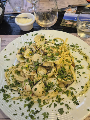 Son Mari : Spaghetti alle Vongole (PĂątes Ă l'ail et coques), Ma Couzâ : Salade avec son chĂšvre, Son Fils : Pizza Regina, Sa Fille : Escalope Milanaise, Ma MĂšre : Escalope Marsala, Moi : Brochette de RoulĂ©s de Veau Ă la Menthe.