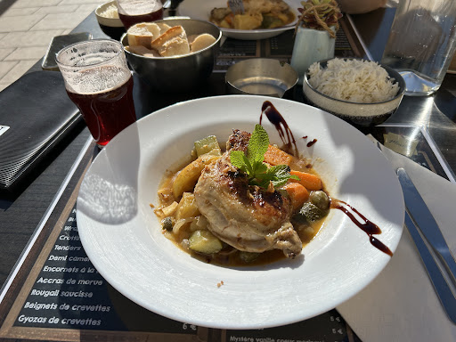 Read moreWe had a lovely formule du jour which was chicken tajine. Our lunch included chicken tajine, rice, veggies, a small glass of beer rouge (tasted like summer cherries), and coffee for 18.90 euros. We sat outside on the terrace open air (or covered geodesic domes) which had a wonderful breeze in the warm Toulon sun....