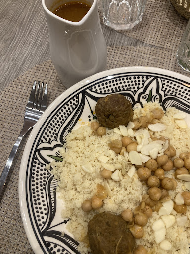 We ordered the shrimp appetizer and the 2 meat couscous. The couscous comes with the sauce on the side in a nice little carafe. The food arrived quickly and the whole staff took time to help us and talk to us and give a real homey experience. Great portions, well-prepared and presented and satisfying.