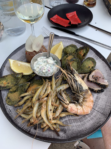 Revenu ce jour 3 août Mon anniversaire Avais jamais pris la parrillada Très très correct Poulpe et gambas très bonne cuisson Pour mon goût poisson très légèrement peu trop cuit Légumes craquant Risotto Plat très complet Personnel très à l'écoute Aime ailloli avec produits de la mer J'en ai eu dans les 3 mn après ma demande Mon mari a opté pour mezzes A recommander Sophie