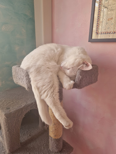 Read moreNous avons découvert l'instant chat ce samedi 7 avril 2018. Nous sommes restés sous le charme du lieu et surtout des chats, qui sont là tel des rois ! Ils passent leur temps à se prélasser, à se faire papouiller et à dormir, ils jouent aussi de temps en temps mais ses petits fripons ne nous ont pas fait cet honneur... Il faudra donc que nous revenions ! Le café et chocolat sont bien bon. Il y a aussi plusieurs thés. Les tartines salés sont divines. Et enfin Valentine qui nous a si gentiment servi est une passionné des chats, bien sûr elle est aussi là pour vous servir avec de bons produits frais et un vin tout simplement divin qui vient de La Londe. Mais l'originalité du lieu réside aussi et surtout dans le fait que Valentine est en totale collaboration avec une association qui propose des chats à l'adoption et dans les semaines à venir il y aura des chatons près à l'adoption ! Donc ce n'est pas qu'un salon de thé c'est aussi un espoir d'une seconde chance pour les chatons et quelques...