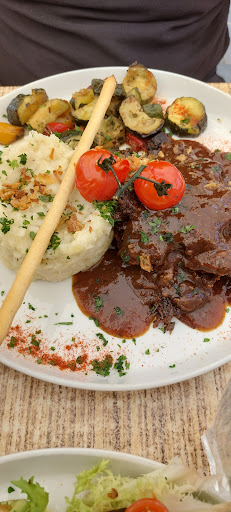 Read moreQuel joli moment, venue juste m'inscrire à un vide grenier, me voilà m'accordant une pause déjeuner et bon sang, que j'ai bien fait. Je suis du même moule que certains : exigeante, gourmande, insatiable.... croyez-moi ou pas, venant d'une famille de paysan, c'est la première fois que je laisse qq chose dans mon assiette (et ça ce n'est pas de moi) .... j'ai pité tant que j'ai pu dans cette salade de poulpes d'un autre continent ... copieuse mais pas copiée (tellement de restaurants vous servent des salades de ce type indignes de cet octopode) là c'est Bizance, de bons gros morceaux de qualité, sur fond de salades variées, agrémentés de frites maison comme je les aime... Félicitations, vous (re) dorez le blason des restaurateurs méditerranéens. Il est impératif que je revienne car le ventre si tendu, je n'ai pu goûter vos desserts. Bravo...