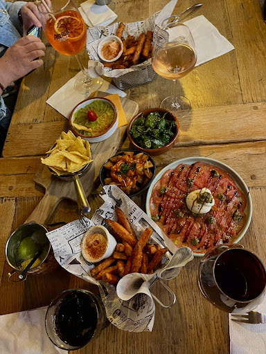 Read moreTombé dessus par hasard lors de notre visite du vieux Hyères, ce qui nous a attiré en premier lieux c'est l'ambiance dégagée par la terrasse. Mi bar à vin, mi bar à tapas, du mobilié style ancien... l'envie d'huitres à faillit nous rapatrier chez son voisin mais c'est finalement la diversité de l'ardoise des tapas qui a eu raison de notre choix. Le service est vite débordé par l'afflux méridien mais celà ramène un tant soit peu d'humanité... La qualité des tapas est au top. Produits qui transpirent la fraîcheur, diversifiés m, préparés avec soin... et oui ça prend du temps mais c'est un choix ! Pour les boissons... ben vous êtes dans une cave !!! Donc le choix a de quoi faire tourner la tête... Sur conseil à la commande nous avons opté pour une bière de production locale, "La Trop", brassée à Hyères. L'avantage de la cave qui fait bar à tapas... c'est que l'on peut emporter de la boutique ce que l'on a goûté durant le repas... ! Budget quand même assez élevé pour y manger régulièrement sur le pouce, mais vaut le détour...
