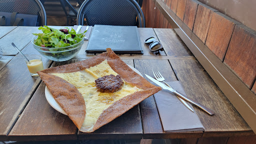 Read moreDans un cadre plutĂŽt rustique, cette petite crĂȘperie reste accueillante et agrĂ©able la disposition des tables permet d'ĂȘtre en osmose avec tous les convives sans avoir le brouhaha d'une salle exiguĂ«. Le service est trĂšs correct et en majoritĂ© souriant. Il y a une terrasse en contrebas mais nous avons dĂźnĂ© dans la salle attenante Ă la cuisine et au bar, les odeurs de cuisine et en particulier de graisse Ă©taient un peu persistantes. La galette que j'avais choisie Ă©tait riche en matiĂšre grasse mais pauvre en aliments principaux particuliers Ă l'originalitĂ© du plat. Ma compagne avait pris une crĂȘpe dessert et si visuellement celle-ci semblait bien garnie rĂ©ellement le peu de crĂšme glacĂ©e Ă©tait noyĂ© sous une montagne de crĂšme chantilly. Maintenant compte tenu du prix payĂ© on ne peut pas dire que le rapport qualite-prix...