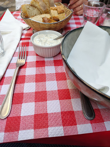 Dès notre arrivée, on nous sert quelques tranches de pain accompagnées d’une sauce fromagère maison à l’ail et aux herbes , un délice! On reçoit ensuite une petite salade de bienvenue, bien fraîche et bien assaisonnée, un geste qui fait toujours plaisir.