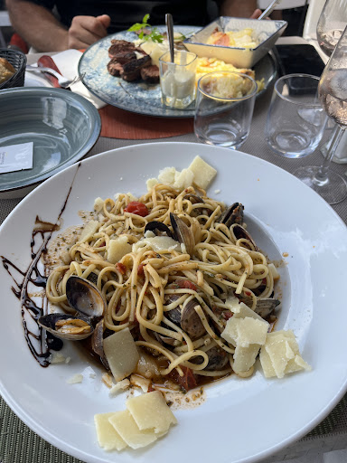 Read moreLe cadre est très beau et l'accueil très sympathique. Le vin italien est très bon. Cela s'est gâté quand on nous a servi les plats. Les pommes de terre et aubergines accompagnant la souris d'agneau n'était que partiellement cuites et la même chose chose s'est produite pour le poisson (le rôti de bar). Lorsque la serveuse m'a demandé comment ça s'était passé à la fin du repas, j'ai fait la remarque et elle m'a lancé un "ça peut arriver, monsieur !" agressif sans autre forme d'excuse. Je conviens volontiers que cela puisse arriver - là n'est pas le problème -, mais la moindre des politesse aurait été d'exprimer un regret ou une forme d'excuse... Ou alors ne pas demander comment était le repas. L'addition a été emmenée sans un mot, suivi d'un bref "au revoir" hyper froid quand nous sommes partis. Mon épouse et moi avons donc eu l'impression d'être en faute d'avoir reçu chacun un plat mal préparé. Je le répète, le problème n'était pas tant le plat (personne n'est infaillible et j'imagine que la cuisine devait être sous pression) mais l'attitude du personnel. J'aurais pourtant aimé recommander ce restaurant dont l'emplacement est...