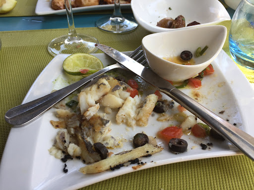 Read moreDéçu... Nous avons choisi le Pelagos sur critiques internet. Bien situé sur la Place d'Armes à Porquerolles, grande terrasse... Menu en plastique qui passe de main en mains sans précautions sanitaires. Une salade de poulpes pour deux très bien garnie servie avec le pouce dans le saladier, c'est plus pratique que de prendre le récipient par dessous, d'autres salades servies de la même façon sur les tables voisines. Encornets annoncés d'origine de Patagonie (c'est honnête) cuits à la plancha, ça peut passer... Un filet de Saint-Pierre sauce vierge combava, très très cuit, pas bon du tout, aucune brillance, séché, 25 € ! trace de goût de Combava (j'avais peur que le zest soit trop présent, quand on connait cet agrume, là aucun soucis, c'est homéopathique), pommes de terre en accompagnement recuites, molles. Verre de vin blanc de l'île selon le serveur ou pas selon un autre... La situation au centre du village justifie certainement le ticket, pour le même prix, il vaut mieux souffrir à vélo et aller à la seconde table du resto étoilé de l'île à...