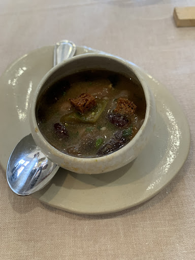 Pour commencer, nous avons dégusté une mise en bouche de soupe au pistou, un plat que je n’apprécie pas habituellement. Le résultat fut époustouflant : cette soupe m’a réconcilié avec ce mets grâce à une perfection d'exécution. Nous avons ensuite savouré des fleurs de courgettes à la brousse. Bien que je ne sois généralement pas amateur de brousse, ce plat était d’une finesse inouïe, avec une subtile touche de menthe apportant une fraîcheur bienvenue.