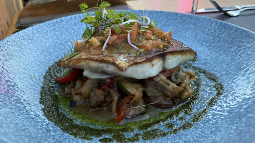Mon mari a décider de tester le menu à la "planche" 34€ entrée plat dessert. L'entrée : œuf de poule mimosa truffe blanche d'été et sa mayonnaise à l'huile de truffes noires. Un délice ! En plat : dos de bar aux agrumes et de petits légumes. Juste parfait tant sur la cuisson que sur les saveurs. En dessert : pêche pochée chantilly verveine vanille de thaiti et son coulis de fruit rouge. Fondant et gourmand à souhait.
