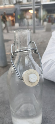 Read moreNous ne savions pas où manger et nous nous sommes basés sur les bonnes notes de ce "restaurant" donc nous y sommes allés. Déjà ce n'est pas réellement un restaurant : plutôt un kiosque sur une grande place avec quelques tables (en extérieur donc). Avec la chaleur ce n'est pas très agréable donc si vous souhaitez vraiment y aller : allez-y plutôt le soir. Il n'y a aucune ambiance et aucun service. Vous devez passer commande au comptoir, récupérer vos assiettes, vos couverts et vos verres au comptoir aussi puis mettre la table vous-mêmes. Les tables n'ont pas l'air d'être lavées après chaque client. On a lavé notre table avec du sopalin... Le repas était bon mais sans plus. Je pense qu'il y a un souci de quantité. Le petit taboulé n'est pas placé dans l'assiette directement mais dans un petit plat type tajine pour pas que l'on remarque que l'assiette est assez vide en réalité. Je pense qu'il manque une garniture en plus, une petite portion de riz ou de frites. En pleine canicule on nous a donné une carafe d'eau du robinet totalement chaude, même pas un glaçon et en plus elle était très sale avec des traces de moisissures sur le bouchon. On dirait qu'ils ne les lavent jamais (regardez la photo). Alors certes ce n'est pas un restaurant de luxe mais vous payez /14€50/17€50/20€50 une petite assiette (selon laquelle vous avez choisi) + une canette de soda sans dessert ni rien de plus et vous faites tout le service (même débarrasser la table). Nous ne reviendrons pas et nous sommes assez surpris par des avis (réels ?)...